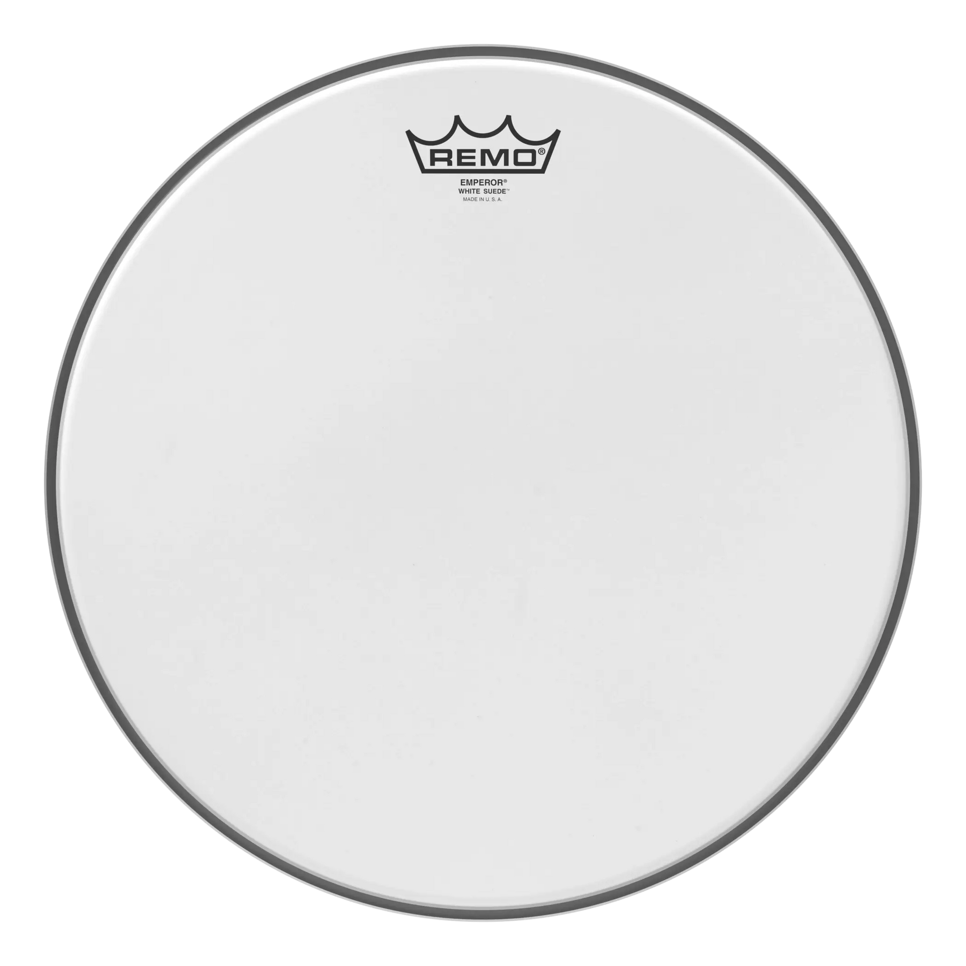 The Emperor® White Suede™ features Remo's proprietary texturing process that produces a focused, warm midrange tone and a soft feel.